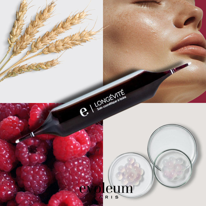 Extrait lipidique des blés français sans gluten, ces molécules sont un subtil mélange de céramosides et d'acides gras, des éléments essentiels à la constitution de la barrière cutanée. Ils sont reconnus pour leurs bienfaits sur la peau: hydratation, fermeté, douceur et réduction du microrelief de la peau. La formule Longévité est pensée en synergie. L'action commune du Collagène et de la Vitamine C pour la jeunesse de la peau est préservée par l’action protectrice des Céramosides ® et des vitamines du groupe B qui renforcent la barrière cutanée.