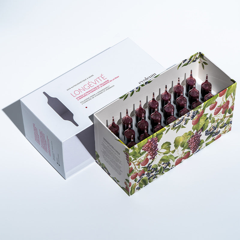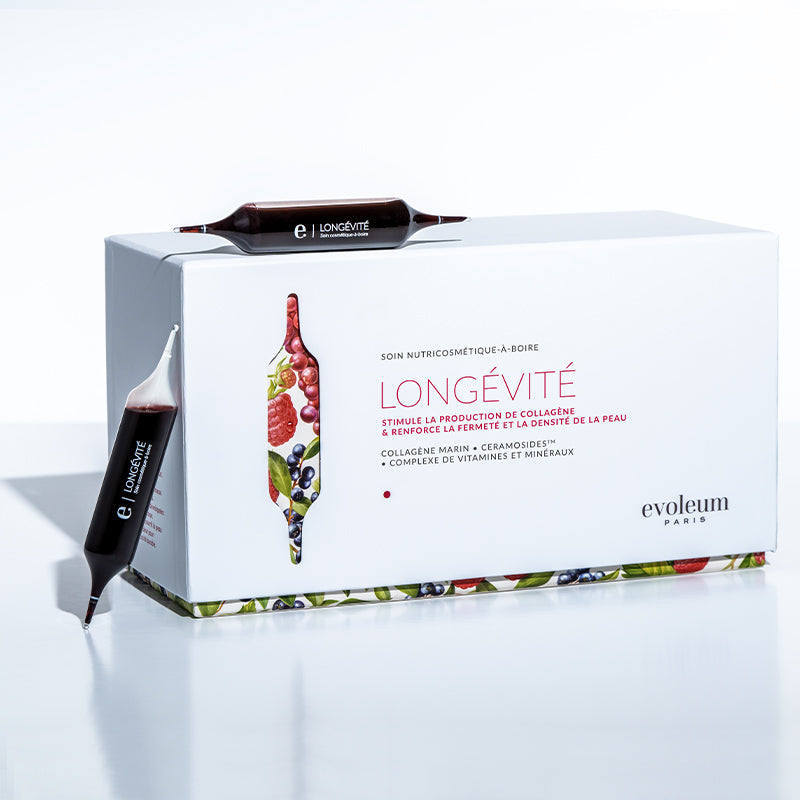Longévité apporte du collagène marin hautement assimilable et relance la production naturelle de collagène pour une peau plus ferme, dense et éclatante.